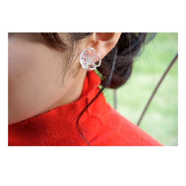 Hario Lampwork Factory Plants ツバキ クリア ピアス イヤリング アクセサリー ジュエリーデザイン ファッションジュエリー